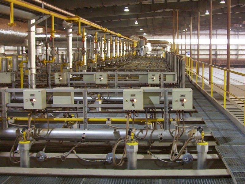 Fuel-fired burners located on top of kiln 1 - viewed standing on top of kiln 1 facing north |